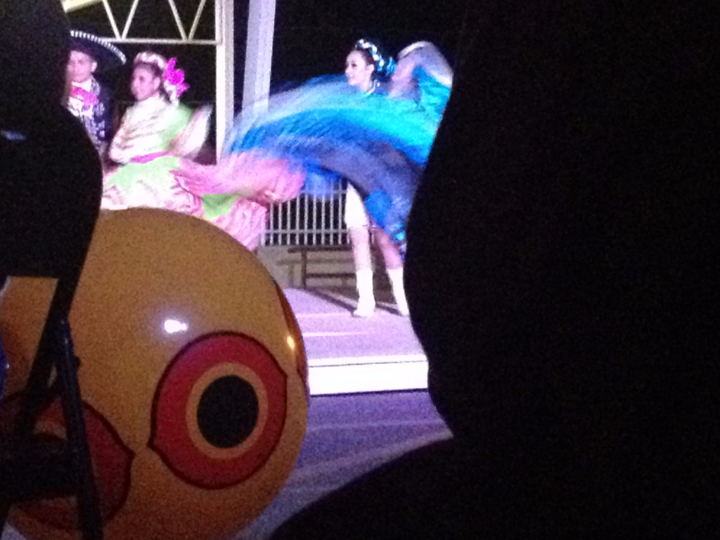 At La Casa de la Cultura in Agua Prieta, two hundred or so people spread out over the concrete plaza. Beneath a tent on the north side, women spoon out a homemade pozole of rich, oily red broth and set tamales on Styrofoam plates. Children help themselves to popcorn from an old-fashioned popcorn machine. There is an ensemble of fifteen teenagers with acoustic guitars preparing to perform, dressed in white collared shirts, while a rock band plays on the center stage. Children careen from one end of the plaza to the other, weaving in and out of clusters of adults, playing an improvised game of dodgeball with a regulation size scare-eye balloon. The Casa de la Cultura has decorated the plaza with these balloons.