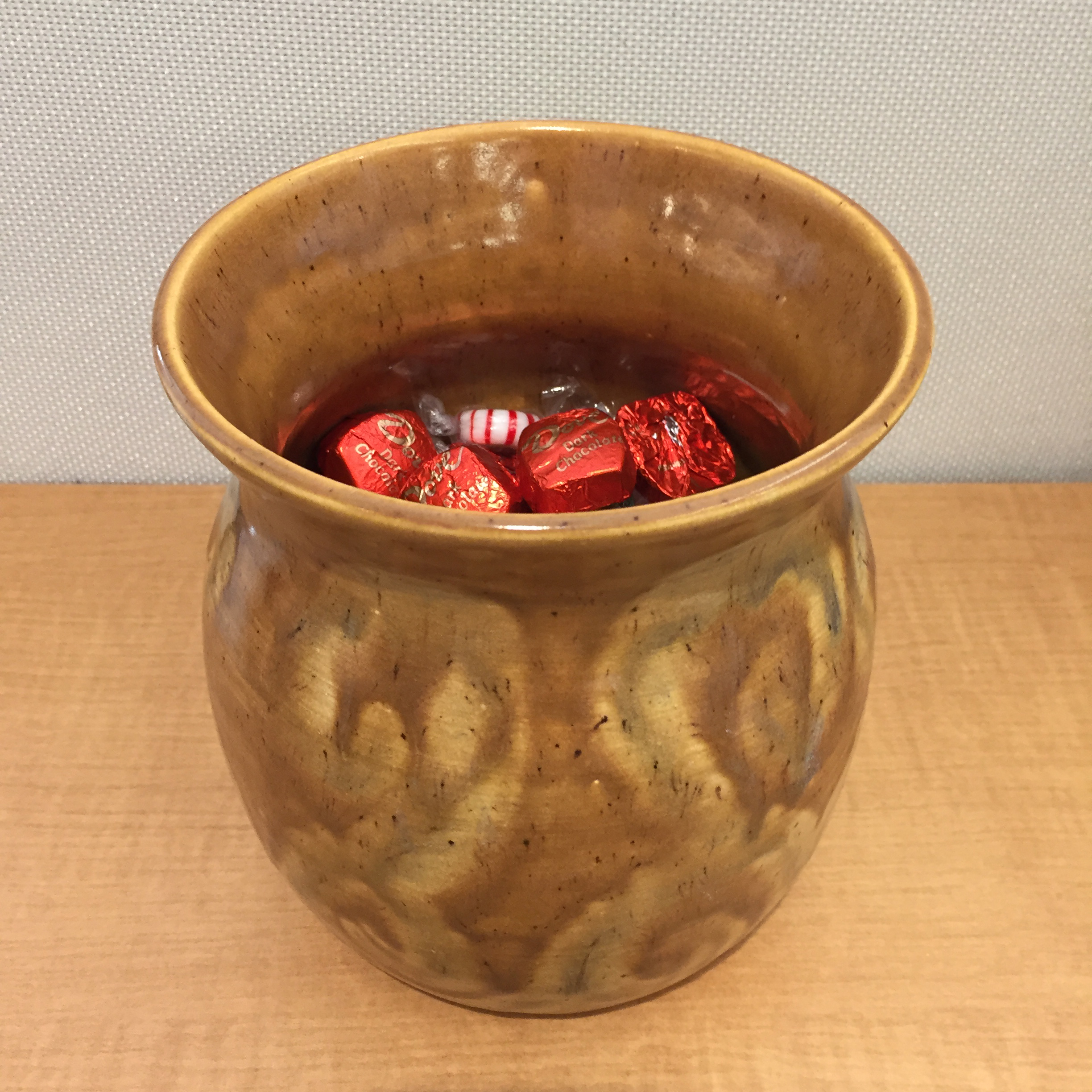 A homely piece of pottery affectionately known as “The Honey Pot.” (It was passed down to me by Beacon’s previous Production Director.) I try to keep it well stocked with treats for the staff. Beacon runs on sugar and chocolate!