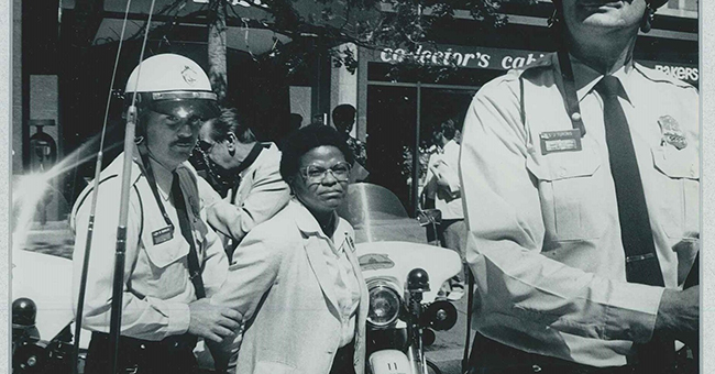 Mary Frances Berry under arrest for civil disobedience at the South African Embassy, Shell protests
