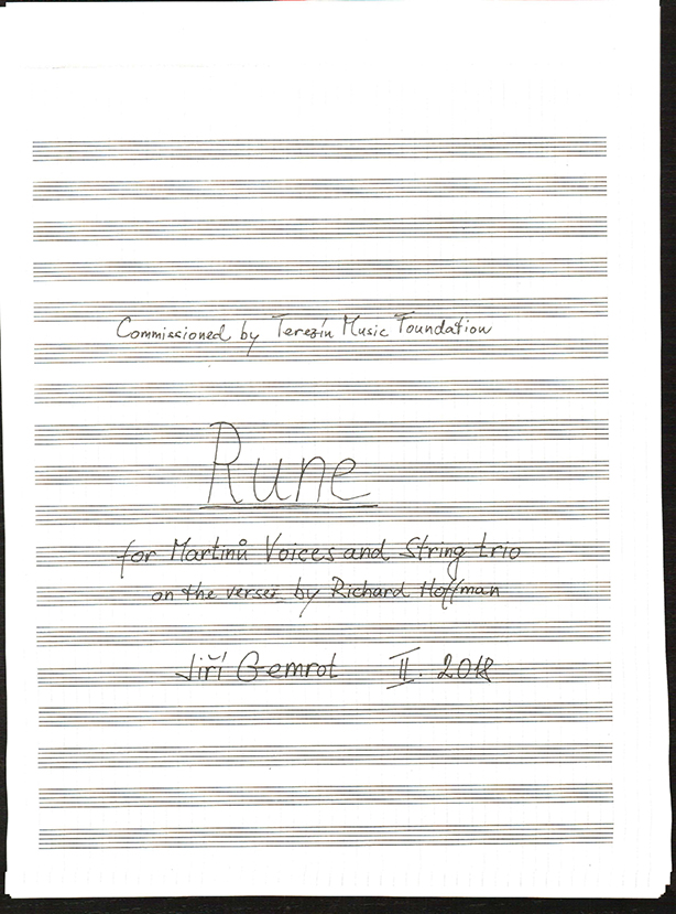 As the synagogue began filling with people, now and again, through the buzz of murmured conversation, I could hear the tuning of instruments somewhere in an anteroom. The concert was part of The Prague International Spring Music Festival, and I was there with the Terezin Music Foundation’s tour. I paged through the evening's program, where the poem appeared, with a Czech translation, “Runa,” beside it: