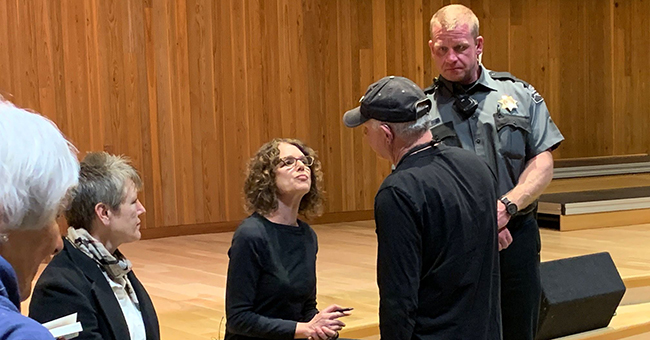 I walked over to one of the organizers of the event. I learned the college had received messages from close to a dozen people who were very upset that COCC would bring Robin DiAngelo to town. Very upset. Enough so, apparently, that a team of security guards was hired and was very visible.