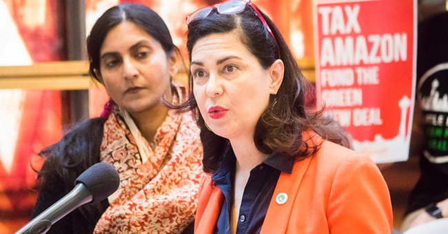 The brutal corporate beat-down of two years earlier centered on attacking socialist Seattle City Councilmember Kshama Sawant, whose organization had led the grassroots push for the tax. Big business deployed attack ads, push polling, a tax repeal campaign that paid signature-gatherers up to $6 for each signature, and a capital strike in which Amazon threatened to stop expanding in Seattle, its main headquarters. The attack was supported by right-wing talk radio shows, pro-corporate editorials, and a building trades union leadership that openly sided with Amazon.