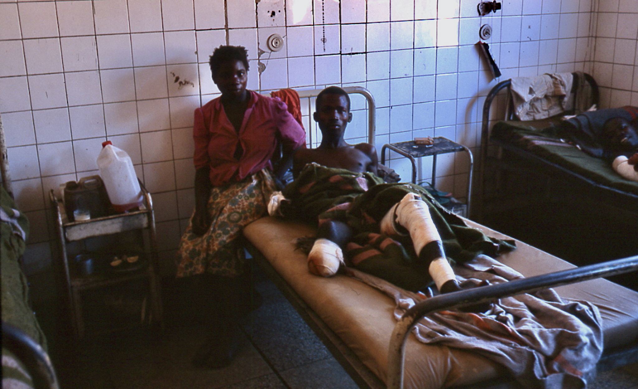 Tomas Jonas and Jodiki Cadita, his wife, Luena Central Hospital, 1996. He stepped on a mine near Luena airport.