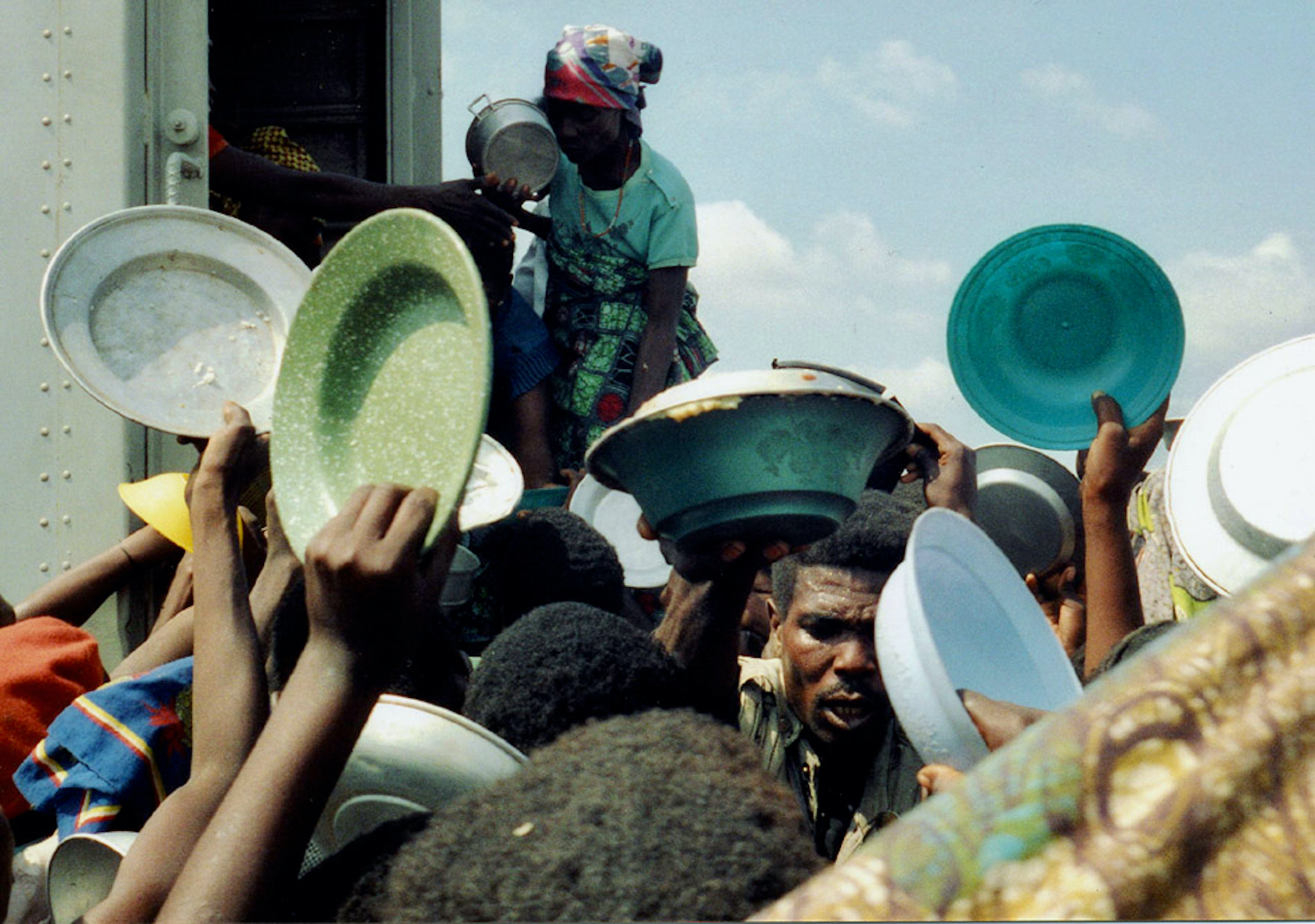An emergency feeding center, 1995. The message on the T-shirt was the election slogan of Angola’s ruling MPLA party.